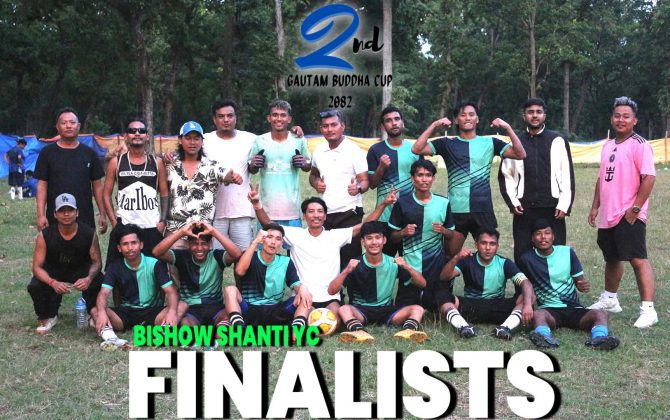 गौतम बुद्ध सामुदायिक विकास केन्द्र कञ्चन ५ पिपरी चापा रूपन्देहीको आयोजनामा सञ्चालित दोस्रो गौतम बुद्ध कप 9A साइड फुटबल प्रतियोगिताको दोस्रो फाइनलिस्ट विश्व शान्ति युवा क्लब बन्न सफल भएको छ।