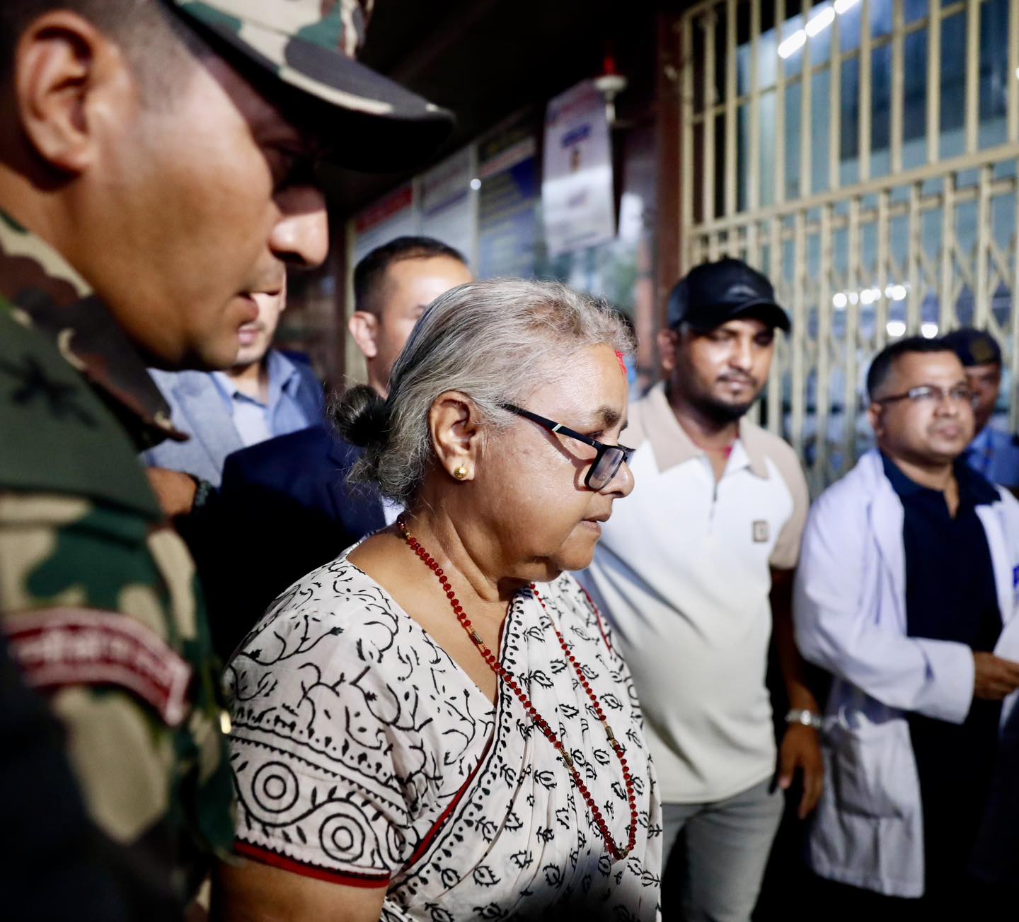 २८ भदौं, काठमाडौं।  शुक्रबार राति प्रधानमन्त्रीमा नियुक्त भएकी नवनियुक्त प्रधानमन्त्री सुशीला कार्की जेनजी युवाहरूको प्रदर्शनका घाइतेहरूलाई भेट्न  मीनभवनमा रहेको सिभिल अस्पताल पुग्नुभएको हो । यसअघि प्रधानमन्त्री कार्की वीर अस्पतालको ट्रमा सेन्टरमा उपचाररत घाइतेहरूलाई भेट्नु भएको थियो ।