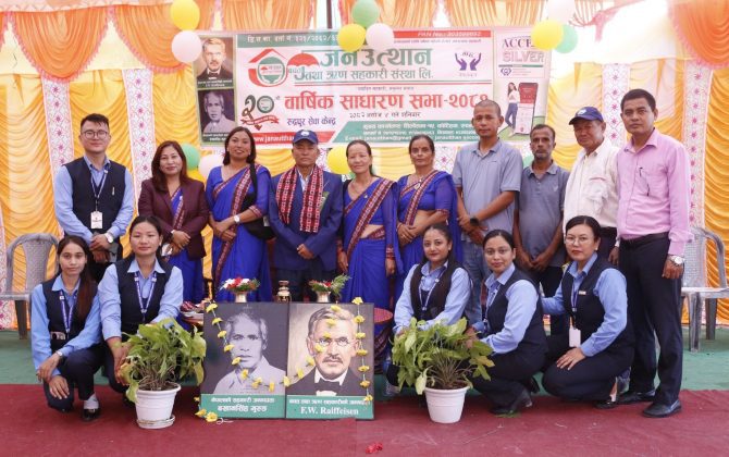 जन उत्थान बचत तथा ऋण सहकारी संस्था लिमिटेड रुद्रपुर सेवा केन्द्रको २० औँ वार्षिक साधारण सभा हिजो शनिबार सम्पन्न भएको छ। रुद्रपुर पिसल्यान्ड भू पू सैनिक पब्लिक इङ्लिस स्कुल, कञ्चन ४ सुनगाभाचोकमा उक्त साधारण...